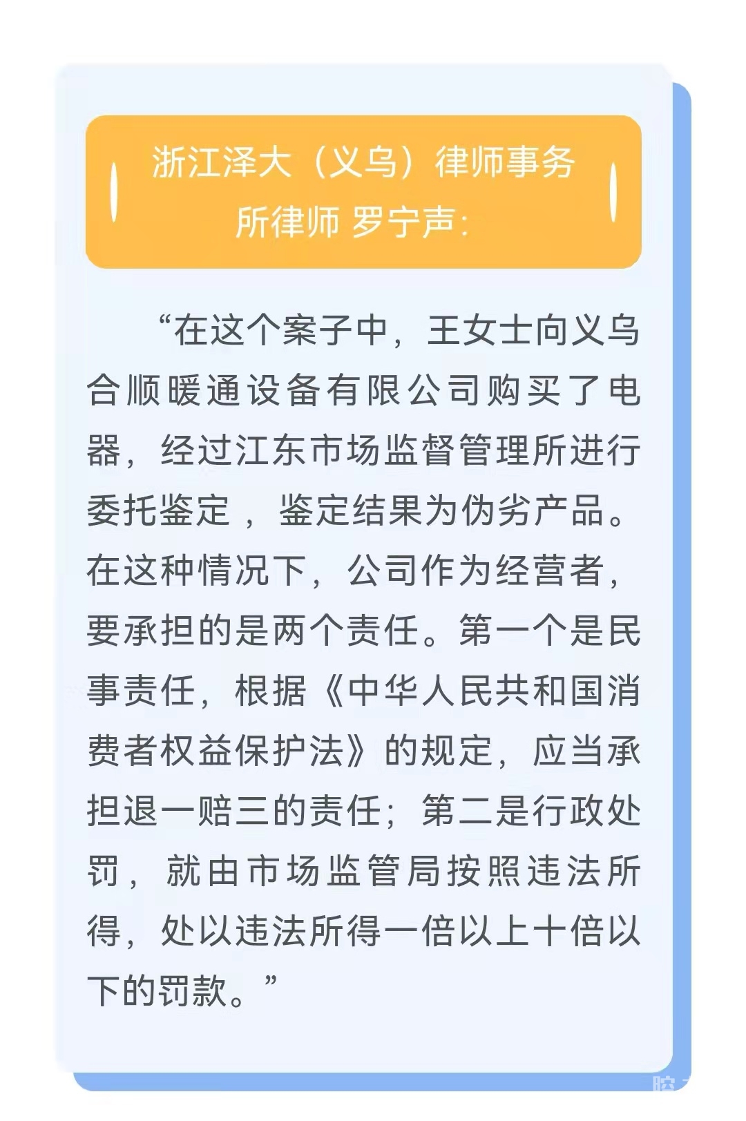王玉向江东市场监督管理所投诉了义乌合顺暖通设备有限公司