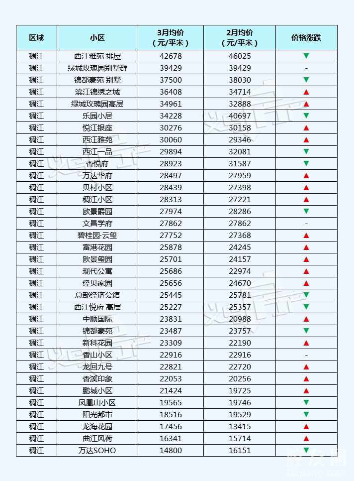城西街道3月均价18939元/平方米 苏溪镇3月均价19300元/平方米