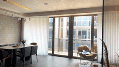 ▲父母房采用混油黑色格栅板,黑色+奶灰的搭配,白色部分关上是背景墙,打开是储物柜,既不影响美观,空间也最大化利用。