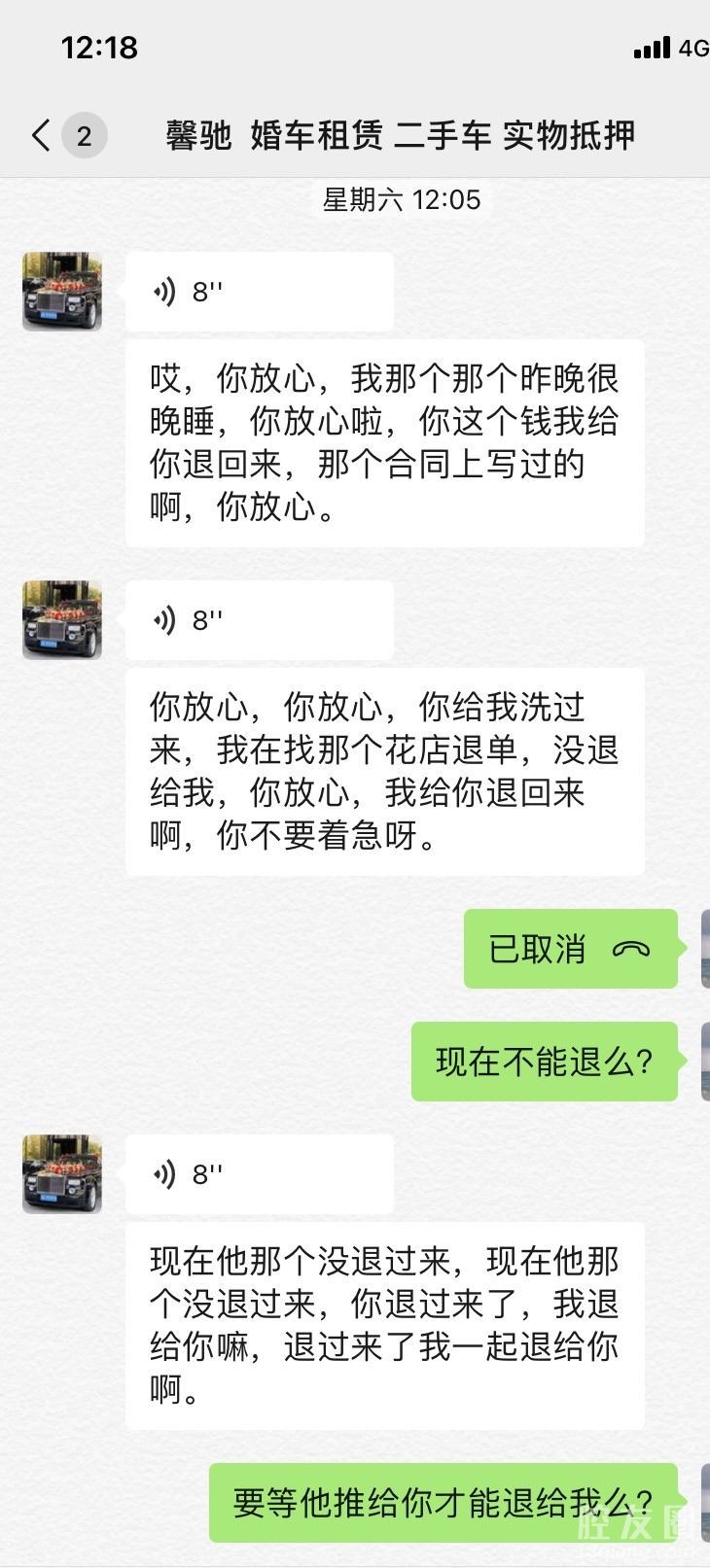 义乌东阳永康的朋友注意了,遇到这个人千万别在他那里租婚车,合同上写的明明白白,清清楚楚,遇到疫情取消婚礼可以退定金,结果开始说得很好很好,