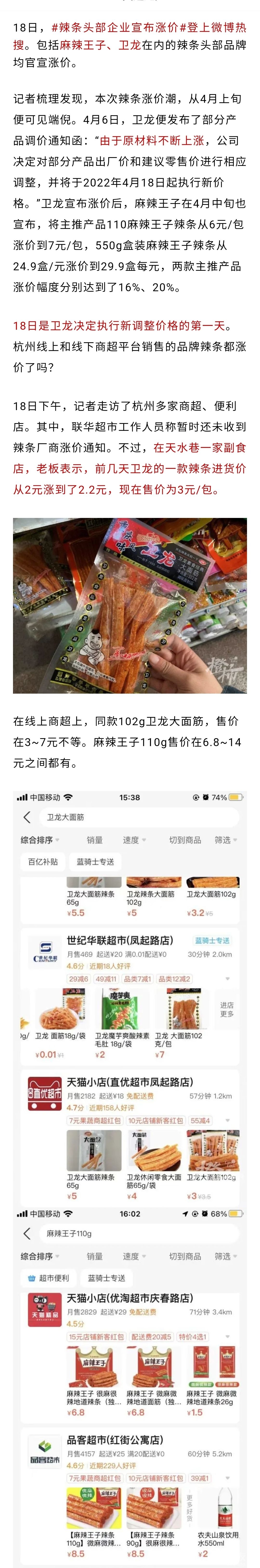 辣条都要涨价了...小时候一包5毛的快乐没有了