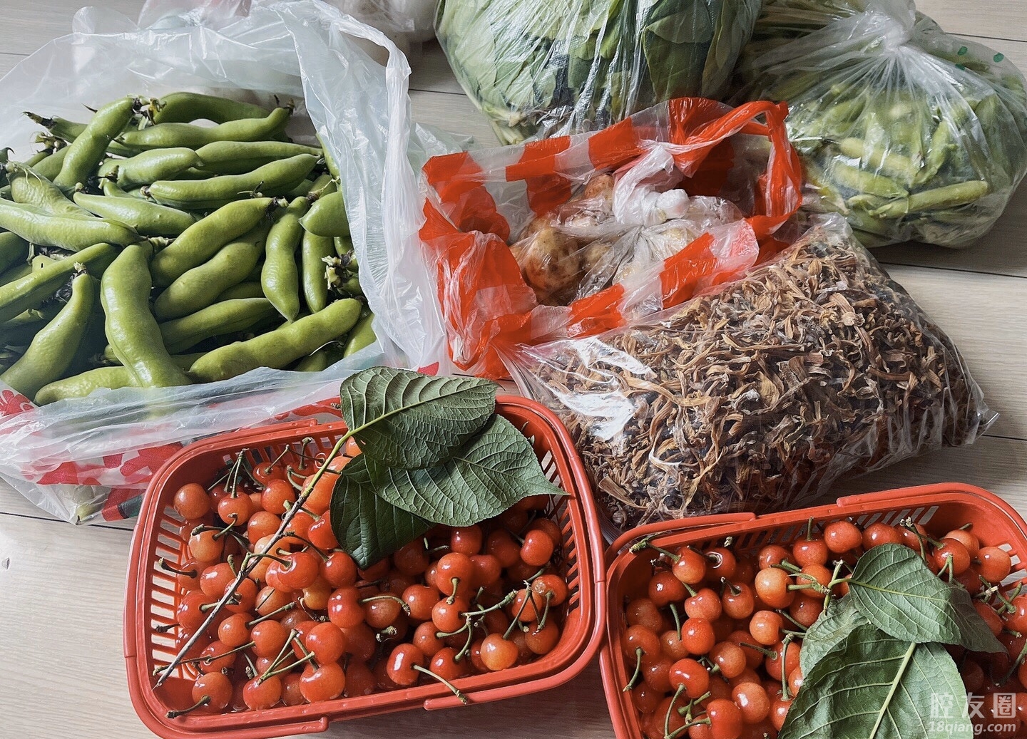 感谢婆婆的投喂,小樱桃她自己去摘的,笋干菜也是今年婆婆自己切自己晒的,土豆啥的是邻居自己种的,纯绿色食品哈哈,又可以好几天不买菜了