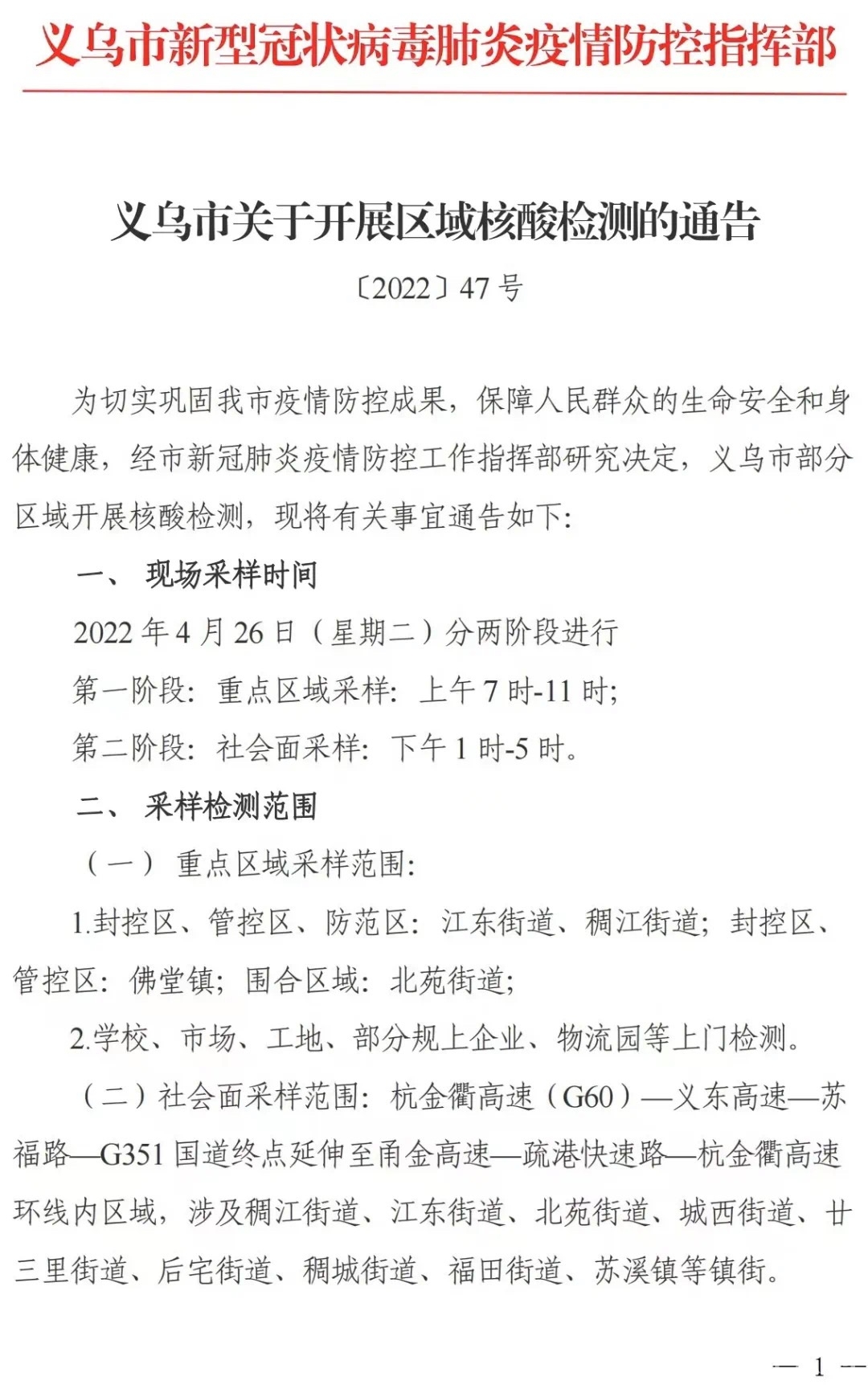 [义乌故事]义乌市关于开展区域核酸检测的通告 [复制链接]