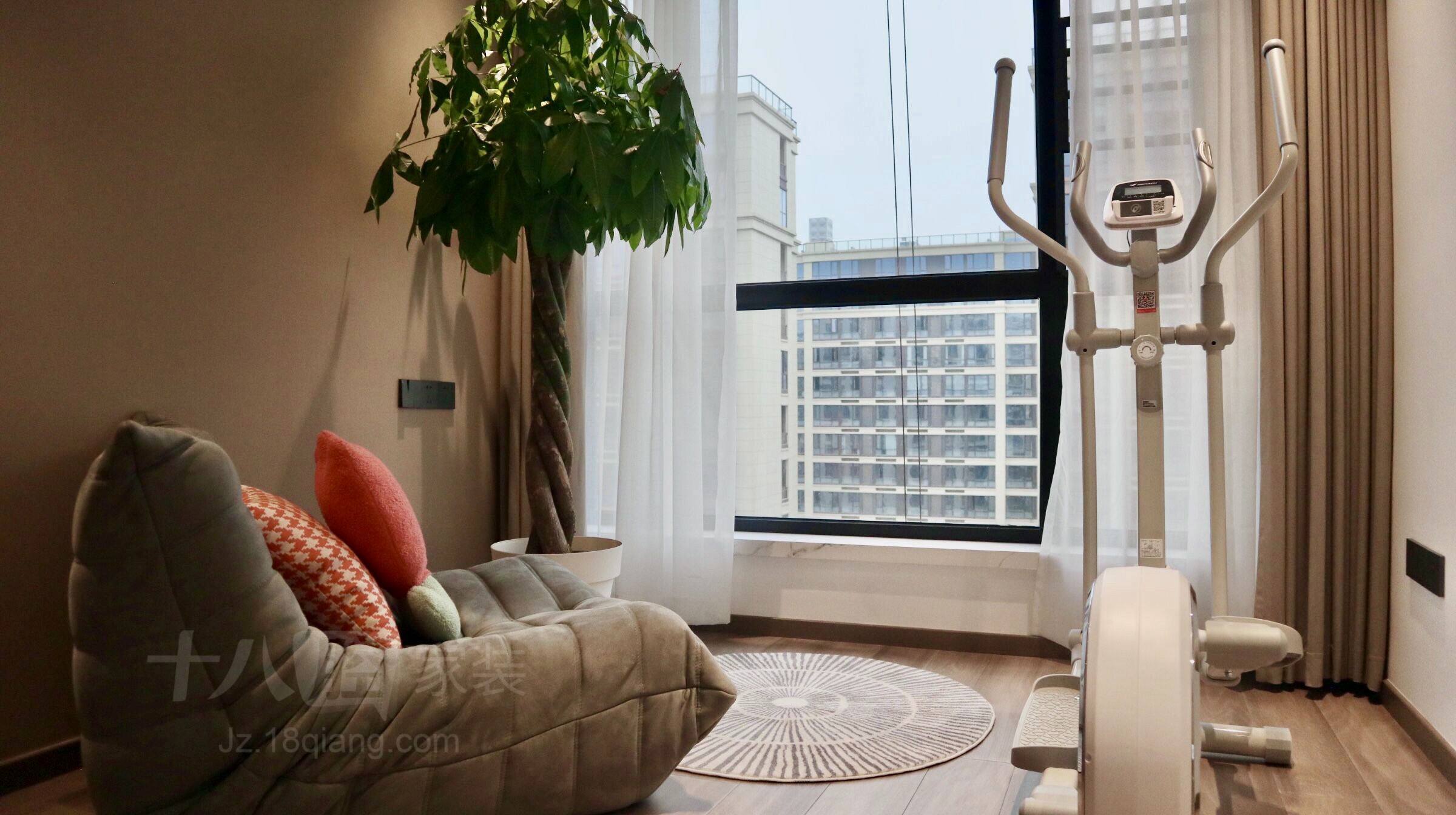 这里原本是儿童房,现在先作为锻炼和放松的多功能房间,懒人沙发配上地毯,文艺感十足。