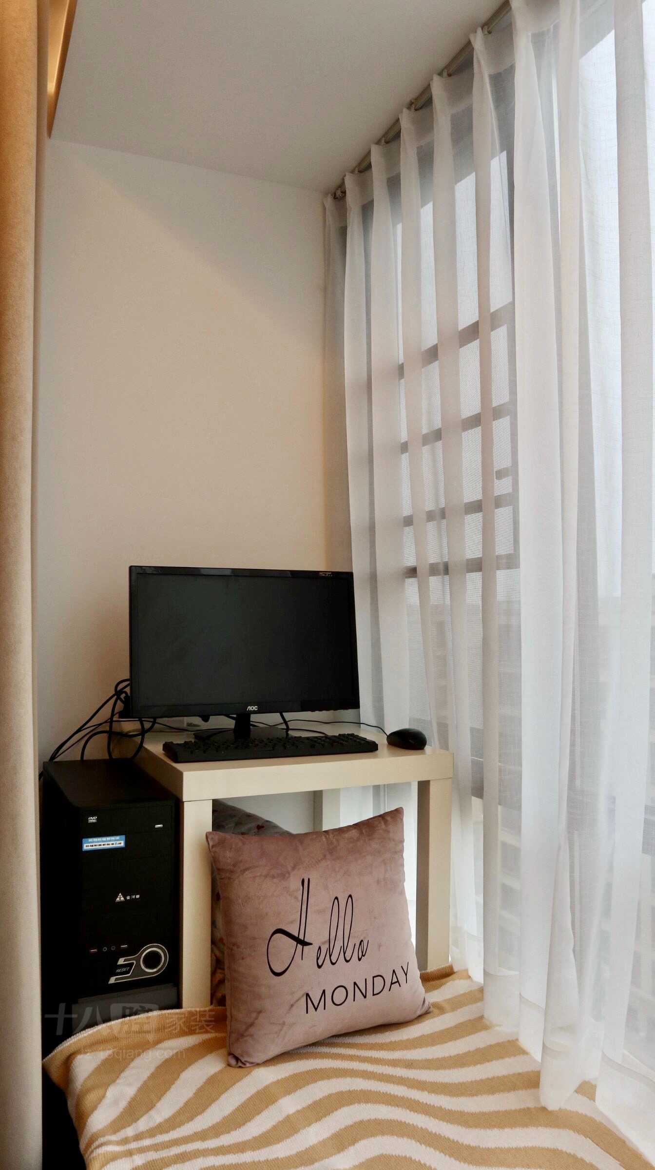 主卧的飘窗布置的非常温馨,墙角也充分利用,做了一个临时办公点。挡在窗帘后面,藏得太深,几乎看不出来哟!