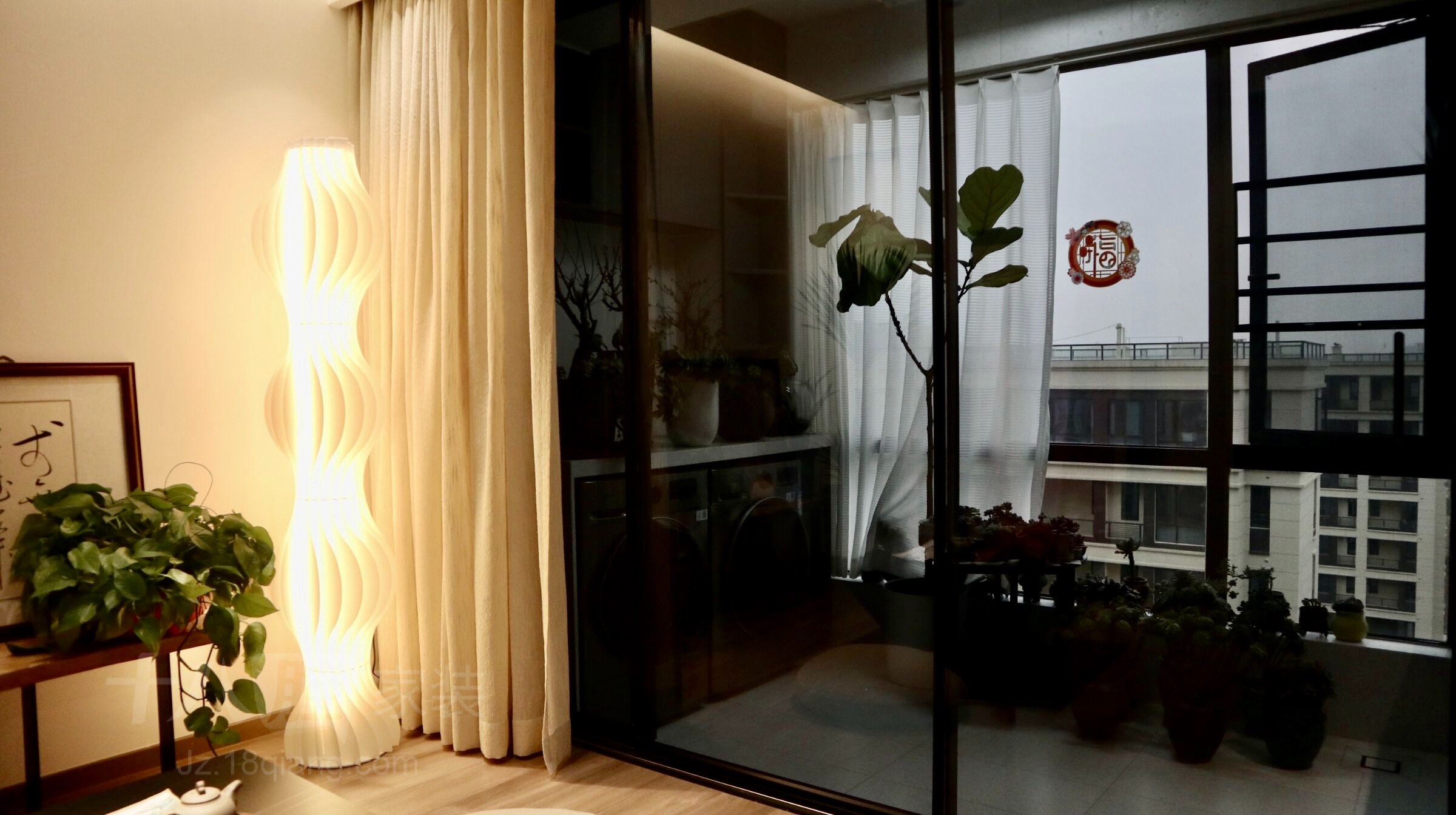 茶室走出去就是阳台,三联动的极窄边框推拉门,最近也非常火,亲自感受一下,相当顺滑,关上开启轻松加愉快,重点是颜值也很高。