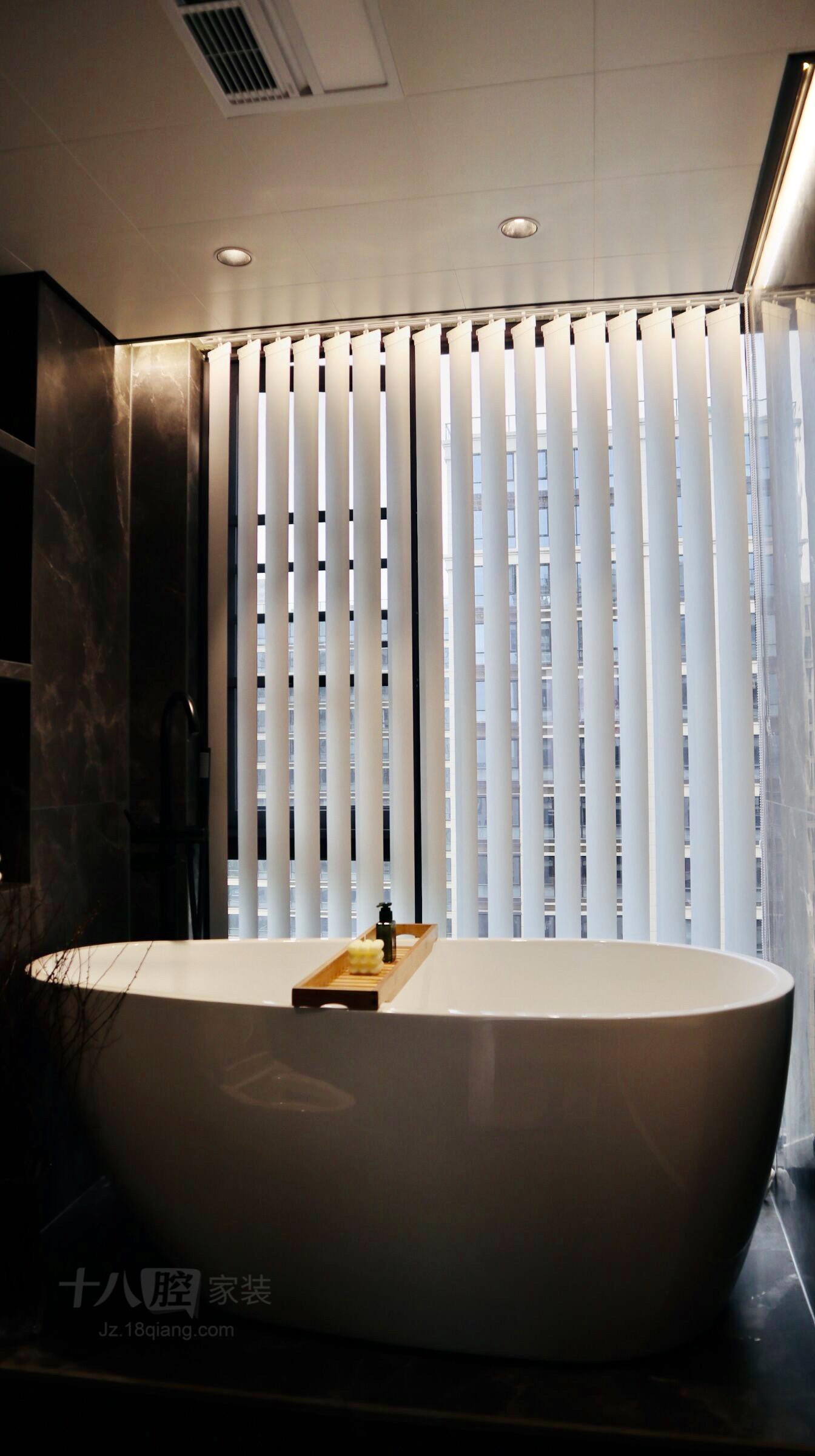浴缸是亚克力的,业主说价格不贵,一是为了装饰,二是以后小孩也会喜欢。竖条型梦幻帘也非常好看。