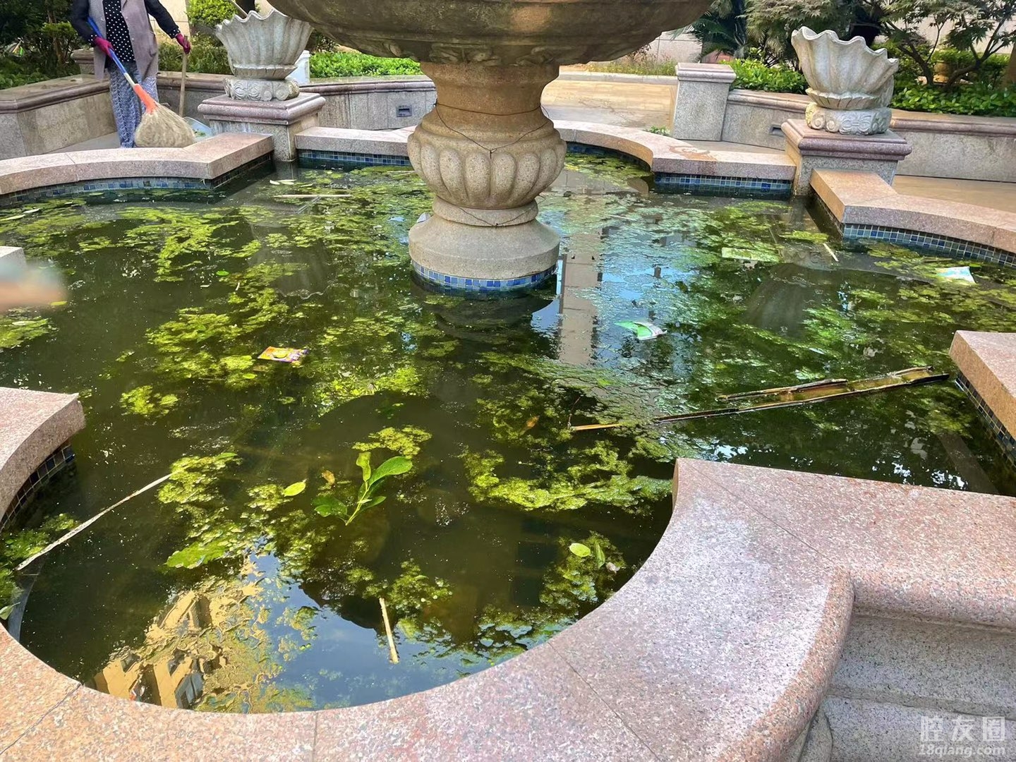 保安都是60多岁,有个别还是行动不便的,景观喷泉现在就是化粪池的样子……