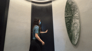再往里走看看,这个转角做了一个”凹凸“的设计,在转角时扩大了转弯空间,不会磕碰的同时,又与整个设计的圆形、弧形相呼应。