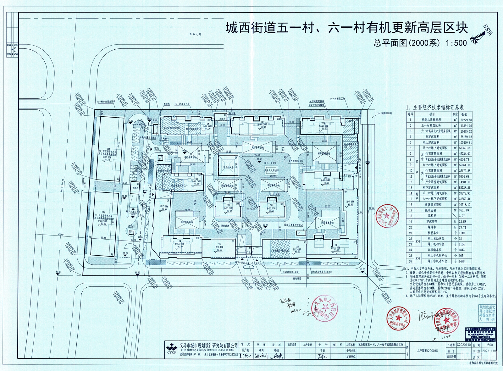 项目规划总用地面积32279.88㎡,其中五一村高层区块11834.36㎡,六一村高层及产业用房区块20445.52㎡。