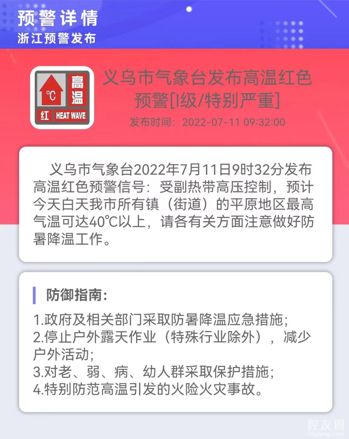 义乌发布高温红色预警,预计今天 ..
