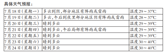 具体来看义乌,入伏后,雷阵雨也要开始活跃起来。市气象台预计本周前期,雷阵雨天气条件转好,需防范局地短时暴雨和雷雨大风等强对流天气;后期副热带高压加强控制,晴热高温。其中,今明两天及7月21日,我市有分散性雷阵雨天气,今明两天气温也将小幅下降。但这样的降温和降雨都是暂时的。7月20日起,最高气温又将回升至39℃。