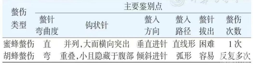 夏秋季节户外活动出现不明原因的过敏反应时需警惕蜂蛰伤的可能,有时不一定会看到蜇人蜂。可根据目击蜇人蜂大小、形态、 颜色及蜇伤处有无毒刺残留等综合判断。