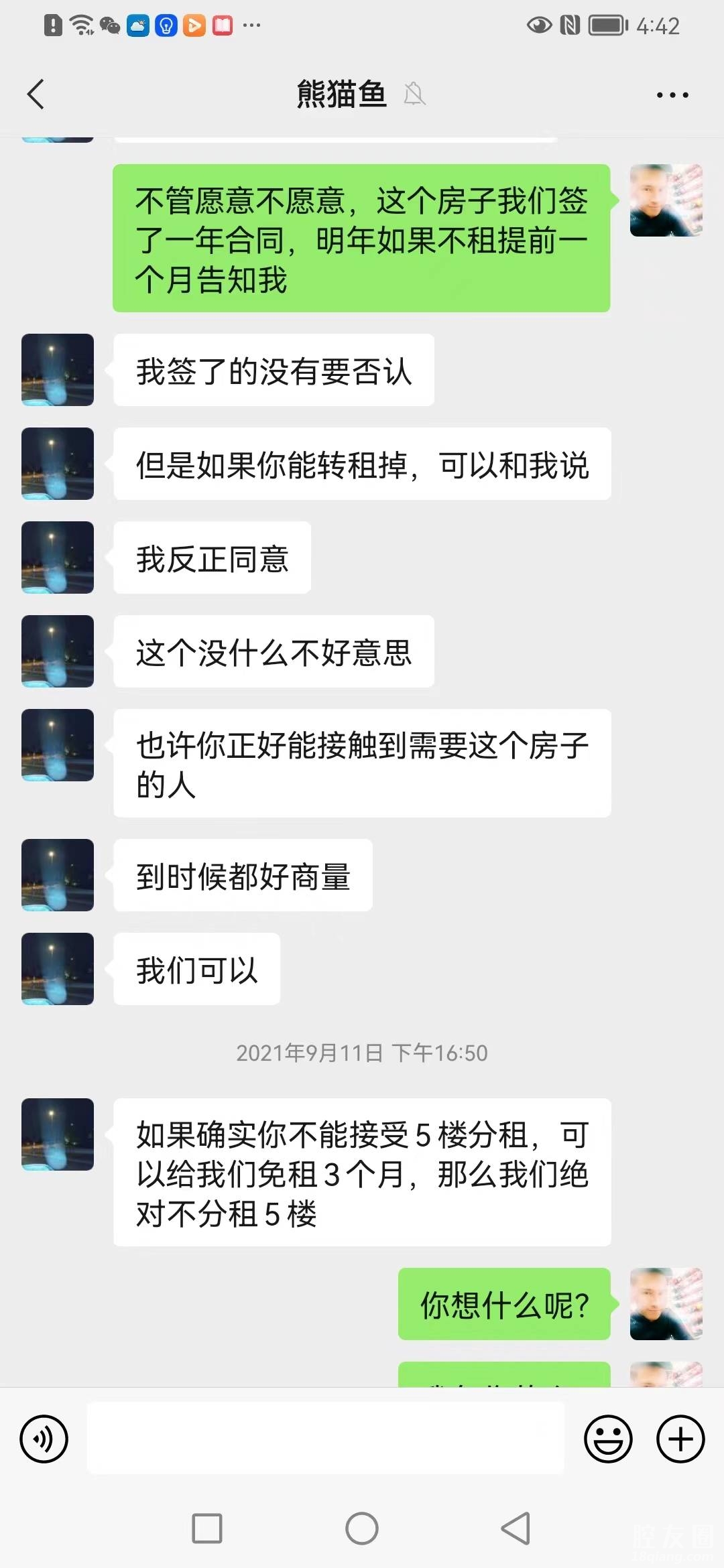 3,她说生意不好想转租,我同意的还帮她发布出租信息,但是5楼我是不同意让她以房间的方式租给人家,毕竟除了安全问题房东也难逃其咎。