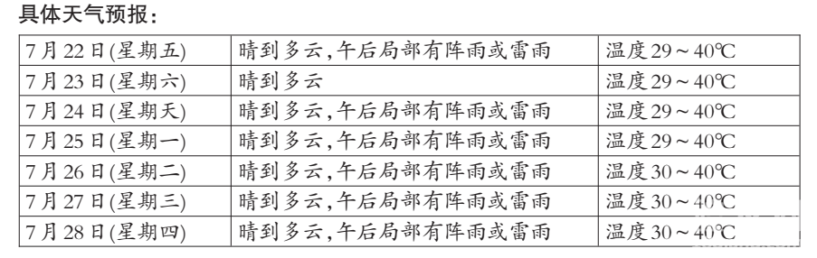 有多凶猛?市气象台预计,随着副热带高压再度加强北抬,月底前我市晴热高温,午后有分散性雷阵雨。高温热浪强度总体与7月8日-17日热浪接近,最高气温可达38~40℃,局部41℃以上。气象部门提醒,广大市民一定要注意防范新一轮高温热浪带来的不利影响。对水资源、电力、医疗卫生等均带来一定不利影响,要做好相应防范。此外,月底前,我市午后仍有雷阵雨,有雷雨地区局地可伴有7-9级雷雨大风、短时暴雨等强对流天气,请做好防范。