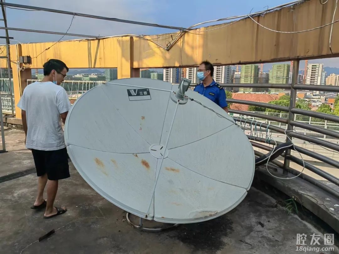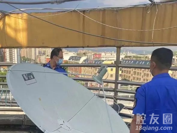 日前,义乌市北苑街道综合行政执法队执法队员在巡查中发现,柳青路一家宾馆的7楼楼顶,安装着两个卫星地面接收器。经现场查看,该处设置的接收器直径均为1.5米,连接着2楼的信号转换器。经过核实,确定该设备并没有经过审批,属于违规设置。