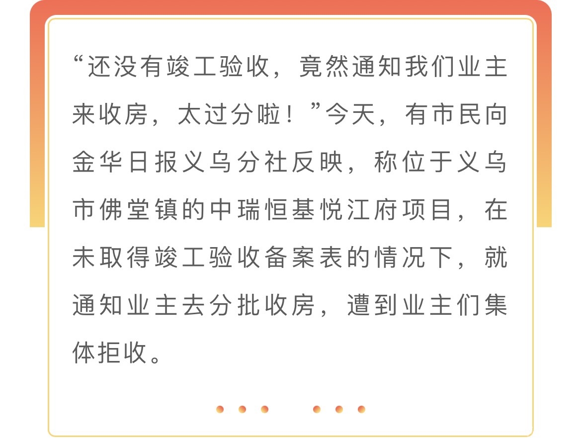 尚未竣工验收,便喊业主收房,义乌这小区被曝光了!