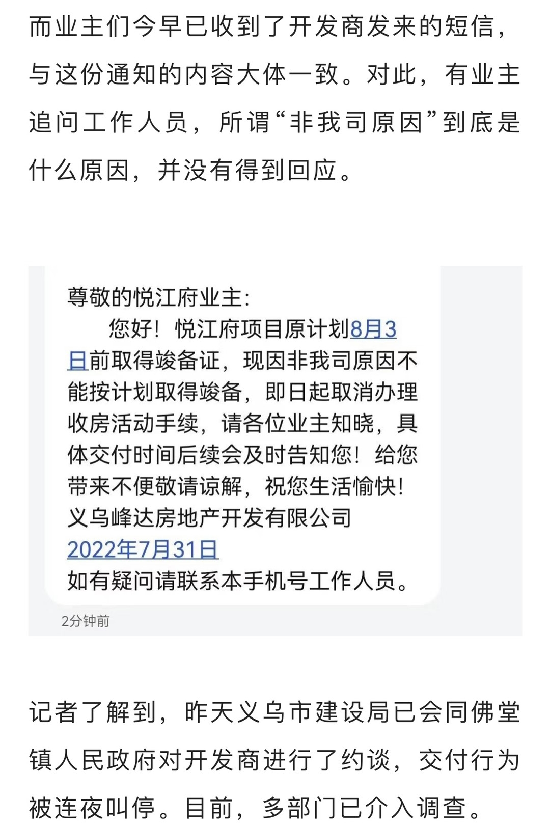 义乌悦江府“交付”事件追踪:交付连夜被叫停,有关部门已介入调查取证!
