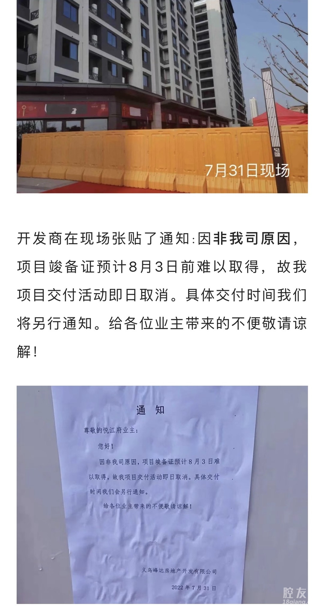 [义乌故事]义乌悦江府“交付”事件追踪:交付连夜被叫停,有关部门已介入调查取证! [复制链接]