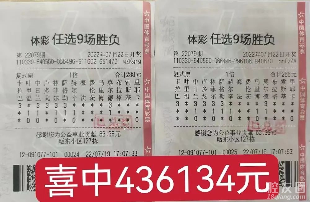 7月22日,“任选9场胜负”第22079期开奖,位于北苑街道畈东小区127栋的3312091077体彩实体店又喜中一等奖2注,奖金合计43万元。