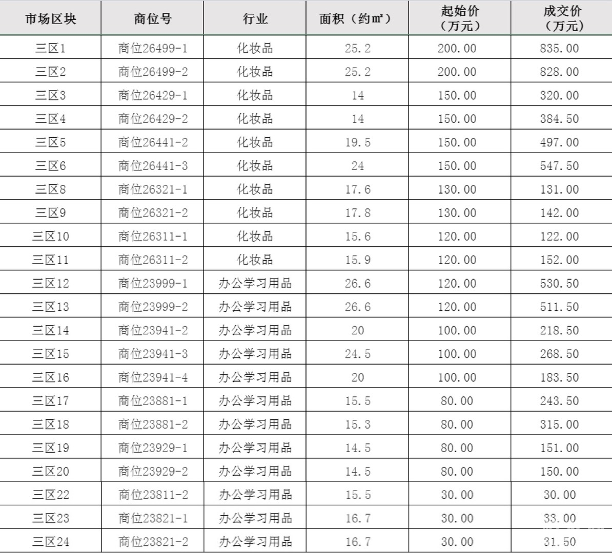 三区新连接体美妆行业商位价格拍出835W元新高!