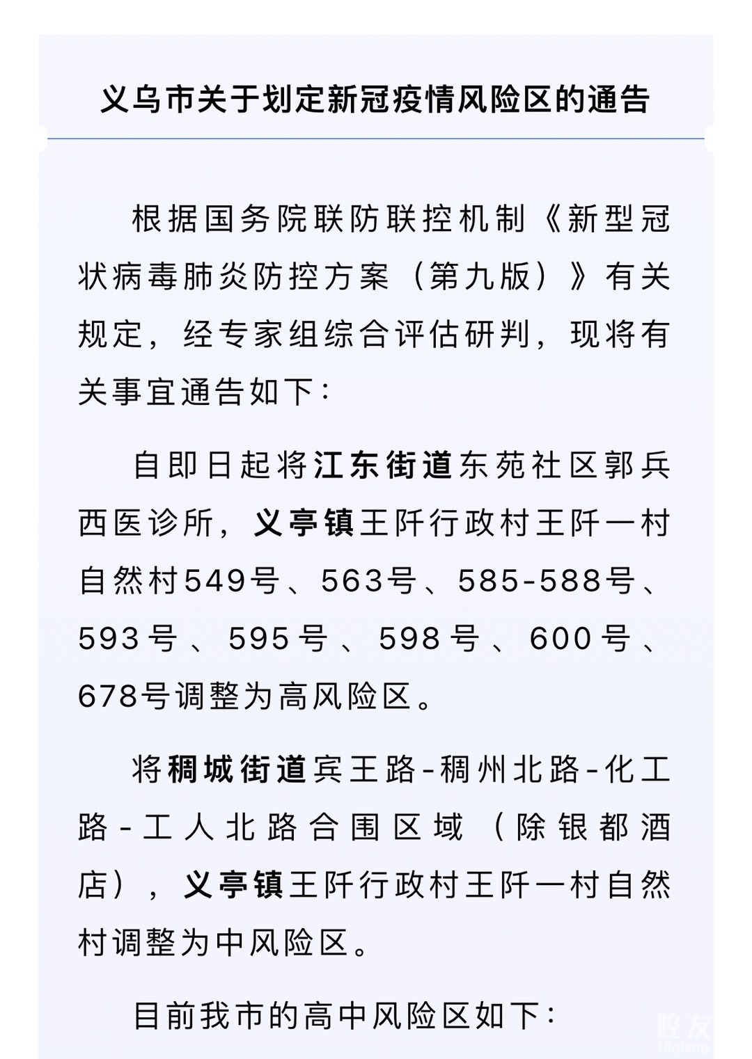 [义乌故事]义乌市关于划定新冠疫情风险区的通告 [复制链接]