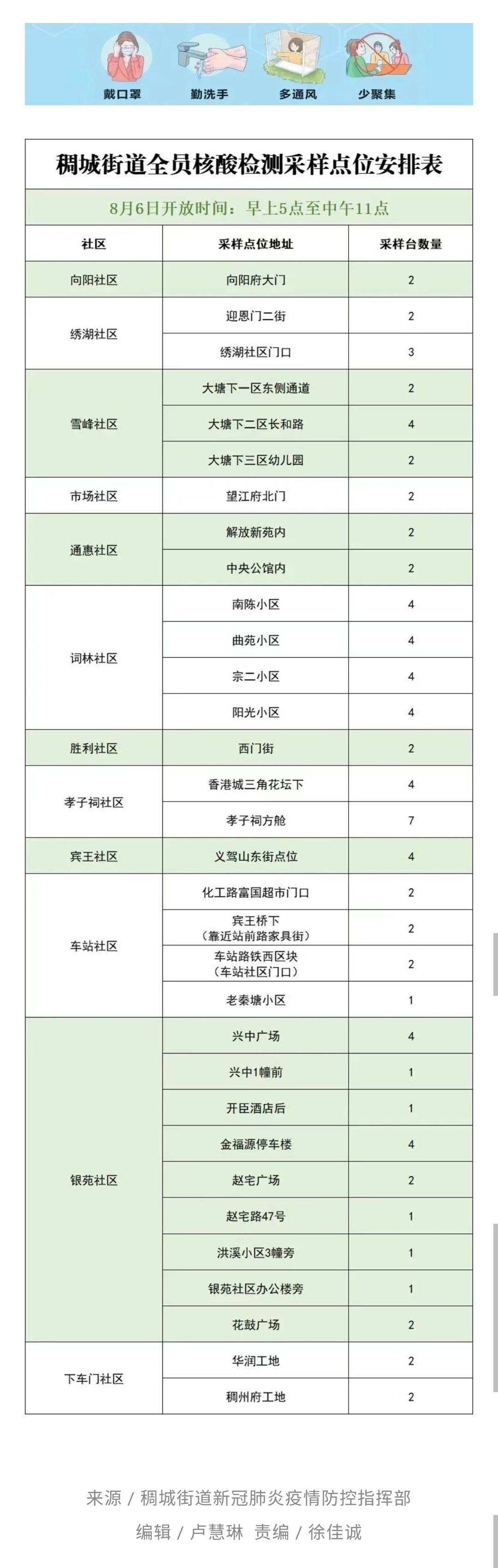 有变动!8月6日!稠城街道全员核酸检测采样点位安排
