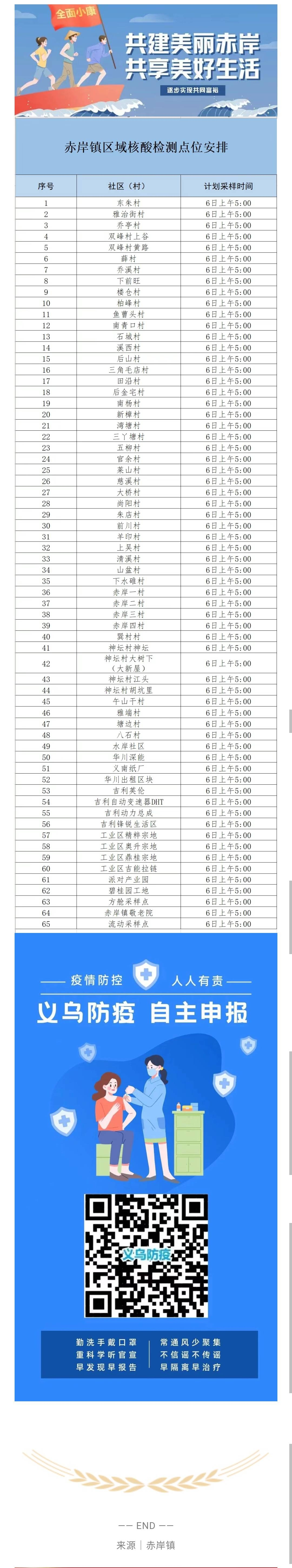 最近几天!赤岸镇全员核酸检测采样点位安排
