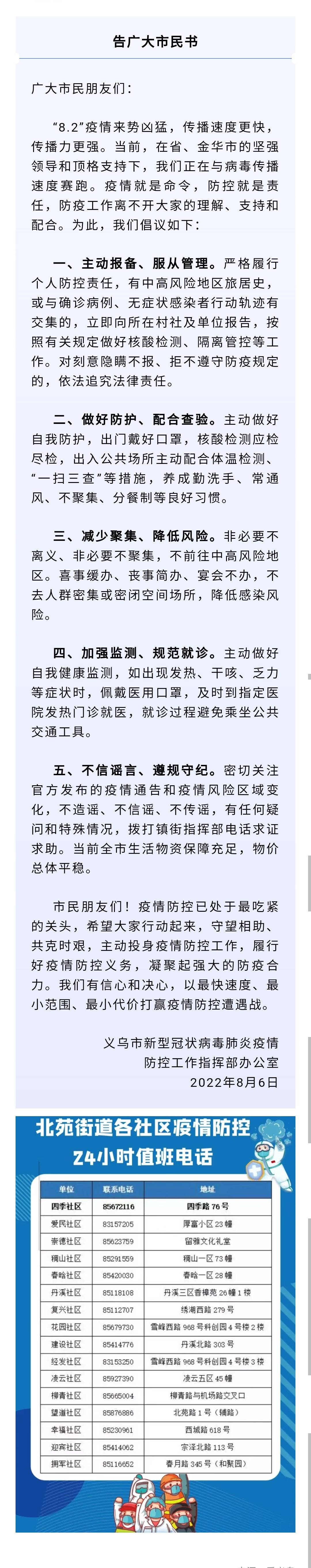 告广大市民书(附北苑街道各社区24小时值班电话)