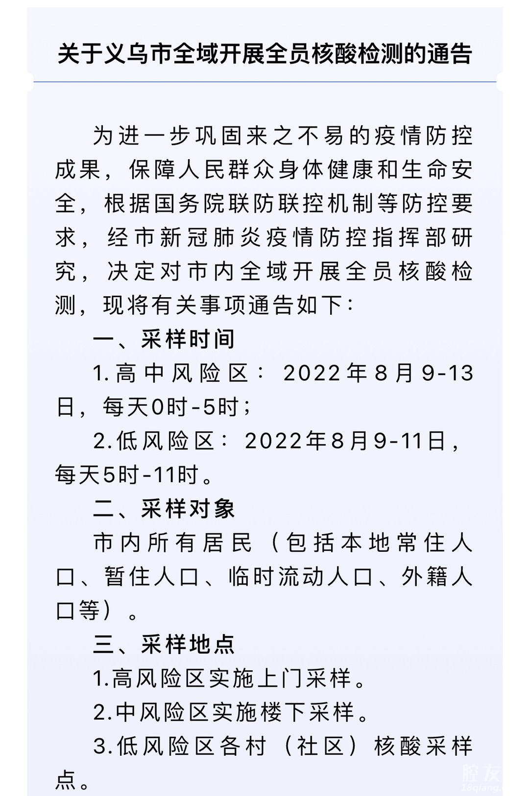 [义乌故事]关于义乌市全域开展全员核酸检测的通告 [复制链接]