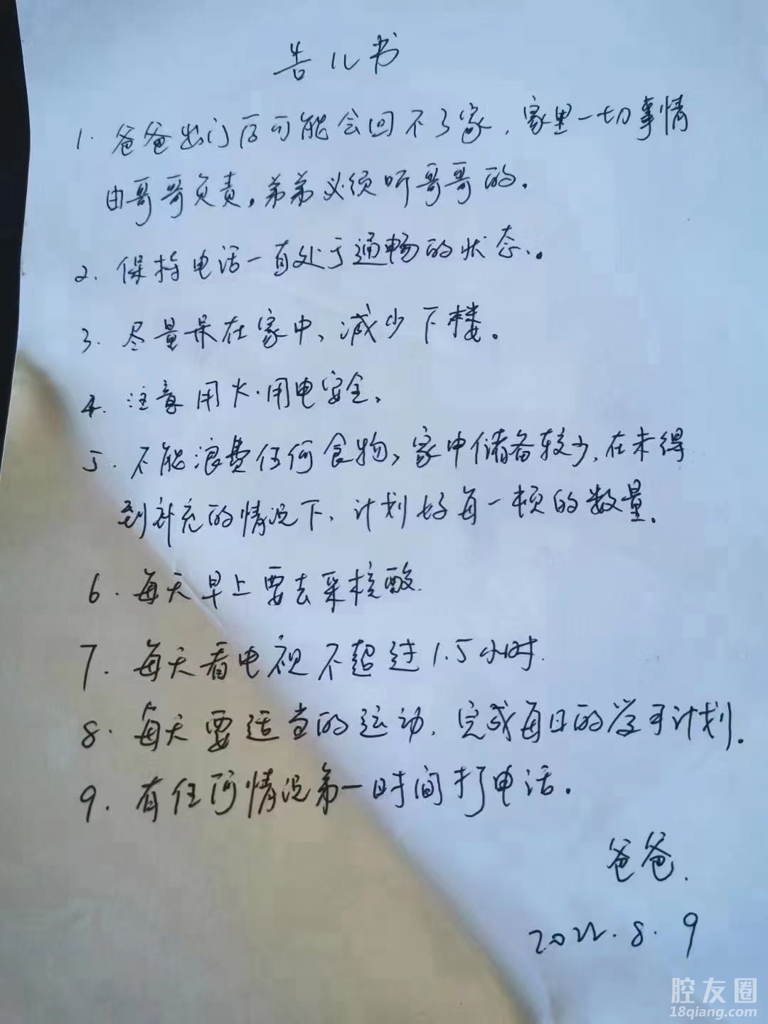 爸爸出门可能会回不了家,给孩子留下了告儿书,这样的教育让人动容