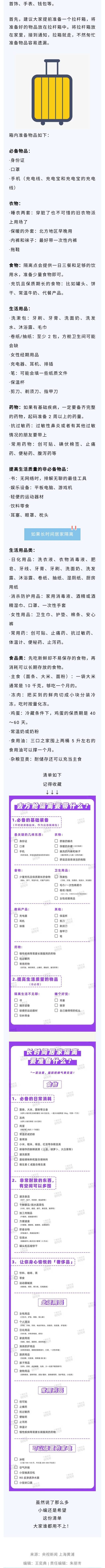 一旦被通知隔离,需要准备些什么?这份清单请收好