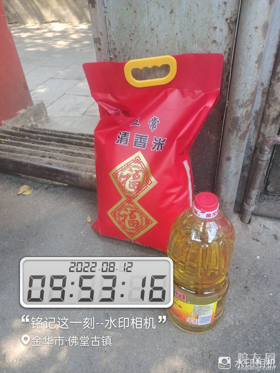 今天8月12日,我在傅老板娘王女的电话告知后,到佛堂镇老街做核酸检测处领取了救灾物资