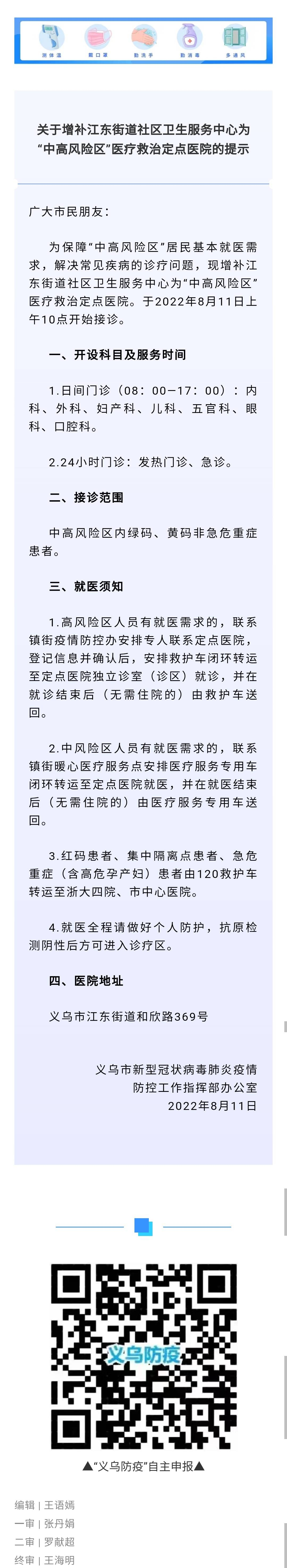增补江东街道社区卫生服务中心为“中高风险区”医疗救治定点医院