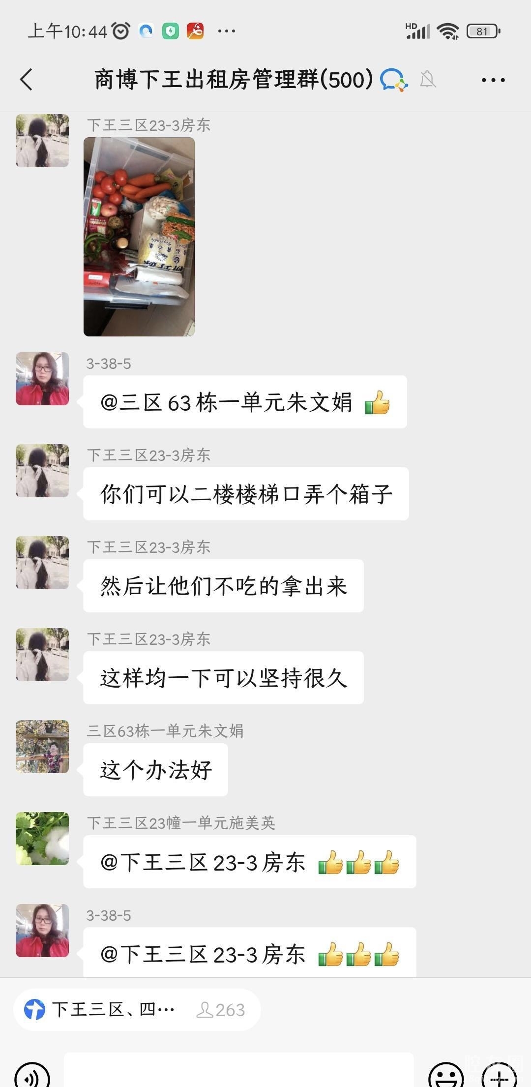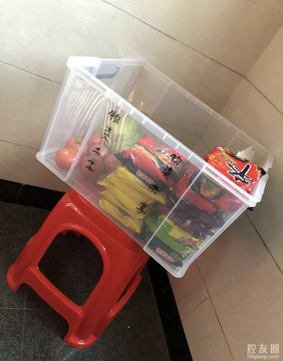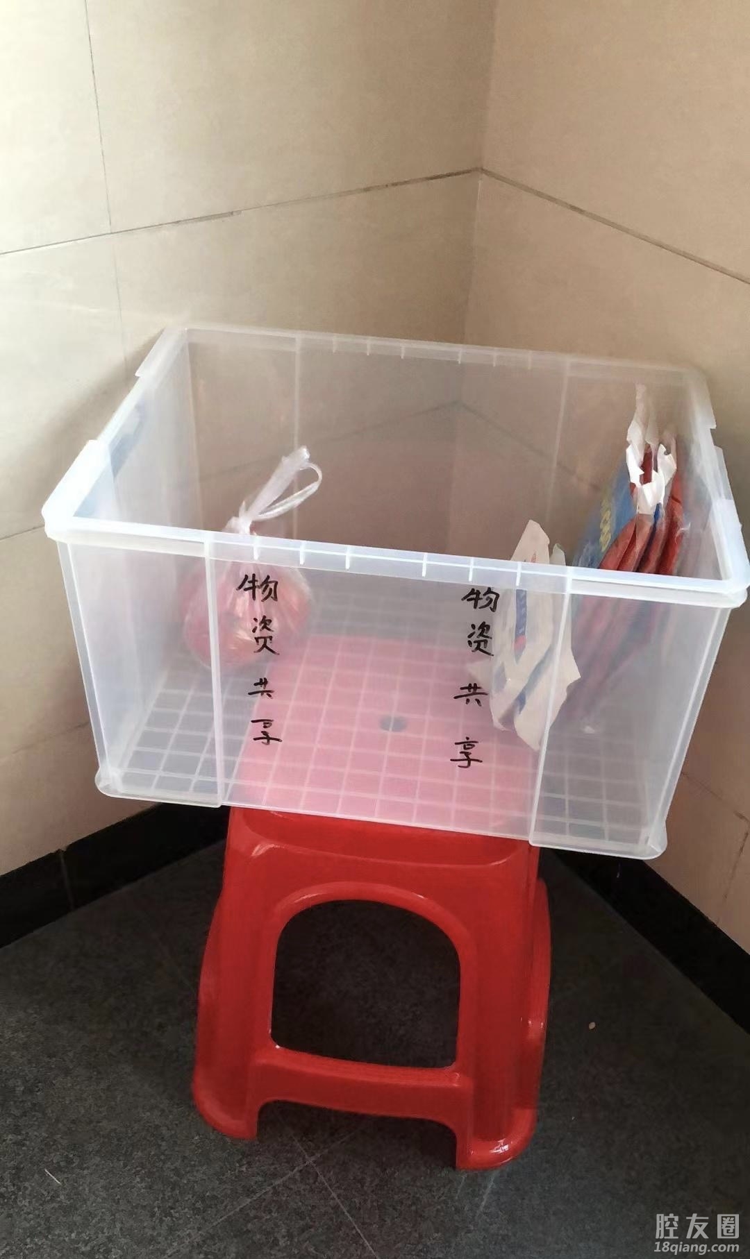 今天早上,下王三区23幢,63幢等住户的房东,在楼道放置“物品共享箱”,动员大家把家里剩余的物资放入箱子,供有需要的人取用。