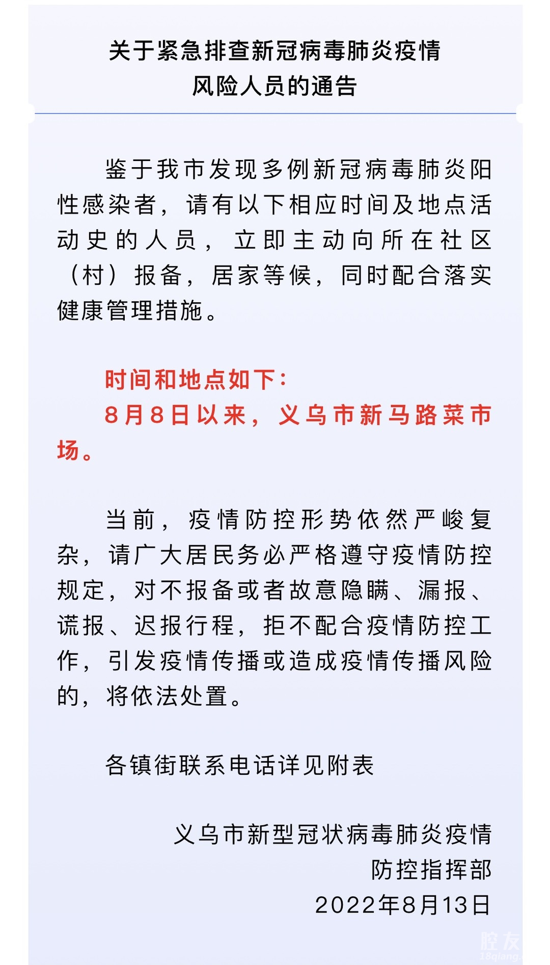 紧急排查!这期间去过义乌市新马路菜市场的人员,请立即报备!