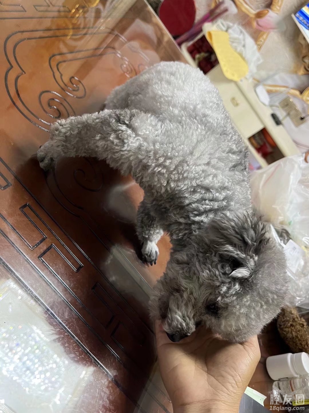 一只公泰迪,大概4斤左右,在柳青七区草坪里大樟树下上厕所走丢了。剃了毛不是很长,耳朵毛长些。图片为回义乌之前的,回义乌时候毛剃光了现在短毛
