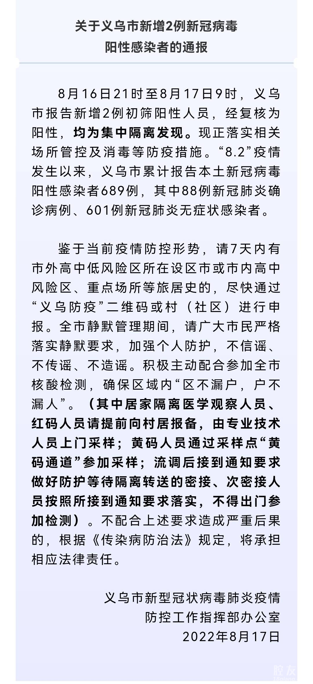 [义乌故事]义乌市新增2例新冠病毒阳性感染者,均为集中隔离发现 [复制链接]