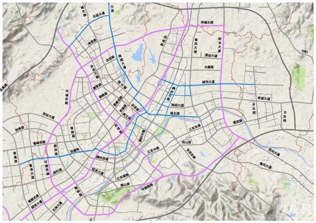 下附义乌市临时通行路线图(红色为可通行快速路,蓝色为可通行地方道路)