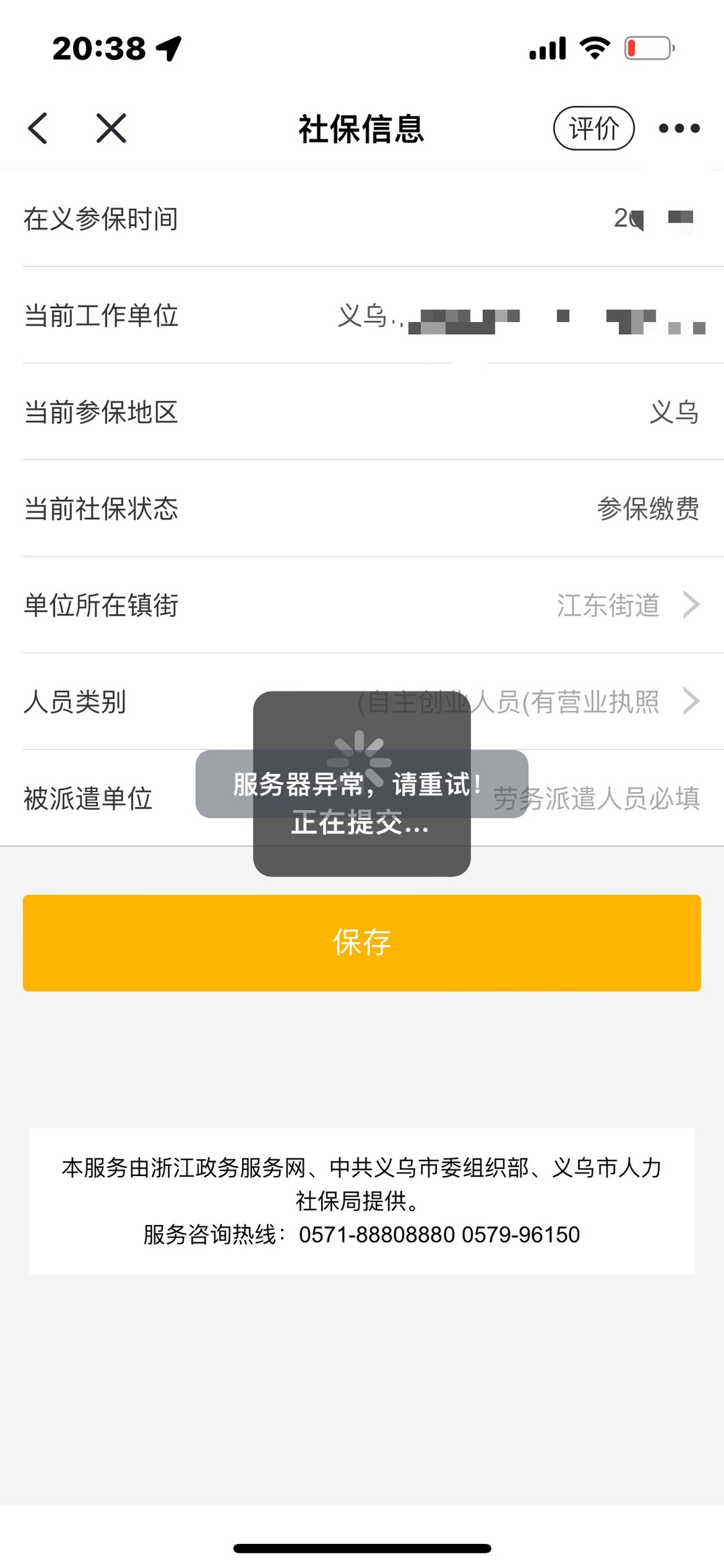 一开始申请时提示让需更新社保信息,我点重新提交保存却一直提示服务器异常