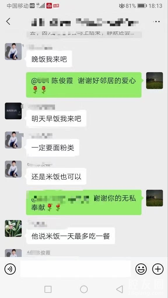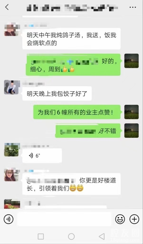消息一发出,就有多名业主响应,表示自己可以给老人送热饭菜。有细心的业主,还请陈旭升打听老人的口味喜好、就餐时间。大家自发在群里接龙为老人送餐。有的业主一早做好八宝粥、麦饼、水煮蛋送到老人家中,还有业主为老人送去了鸽子汤营养餐。得知老人喜欢面食,业主们便为老人包馄饨、做手擀面。