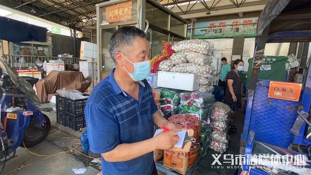 “要进入浙中农副产品物流中心,需按照疫情防控相关政策,进行‘一扫三查’,由于市场容载量按规定不大于30%,需要错峰采购,进入市场要全程戴好口罩。”