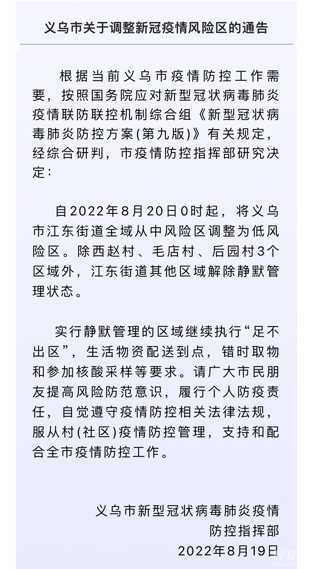 [义乌故事]义乌市关于调整新冠疫情风险区的通告 [复制链接]