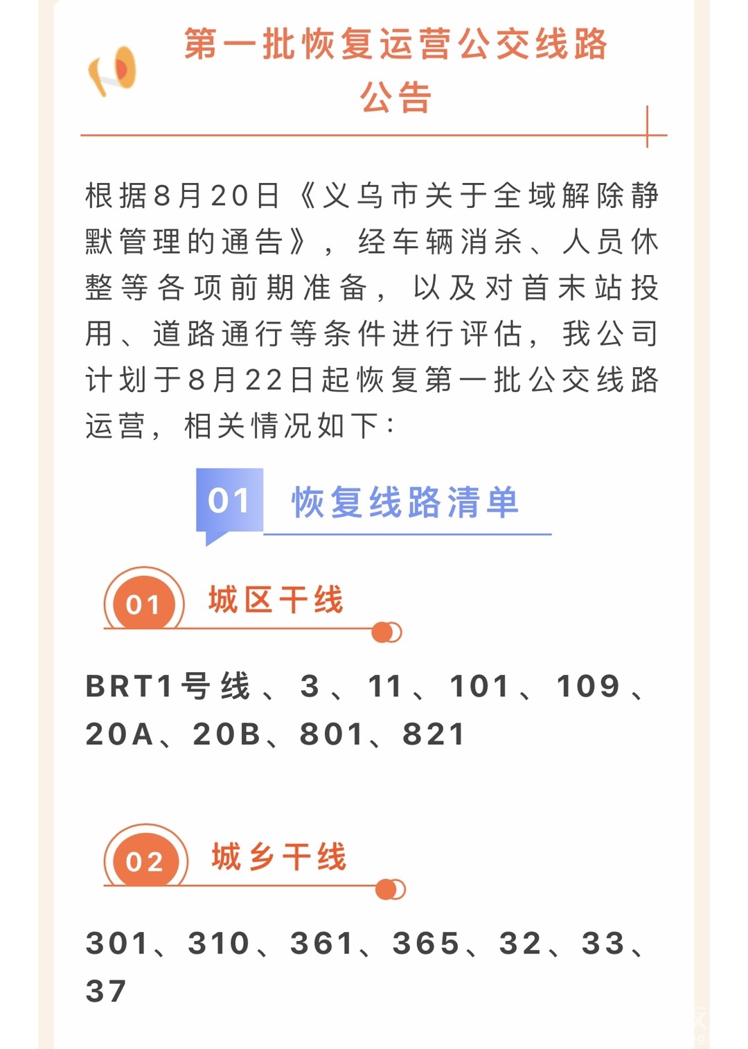 [义乌故事]8月22日起,第一批恢复运营公交线路 [复制链接]