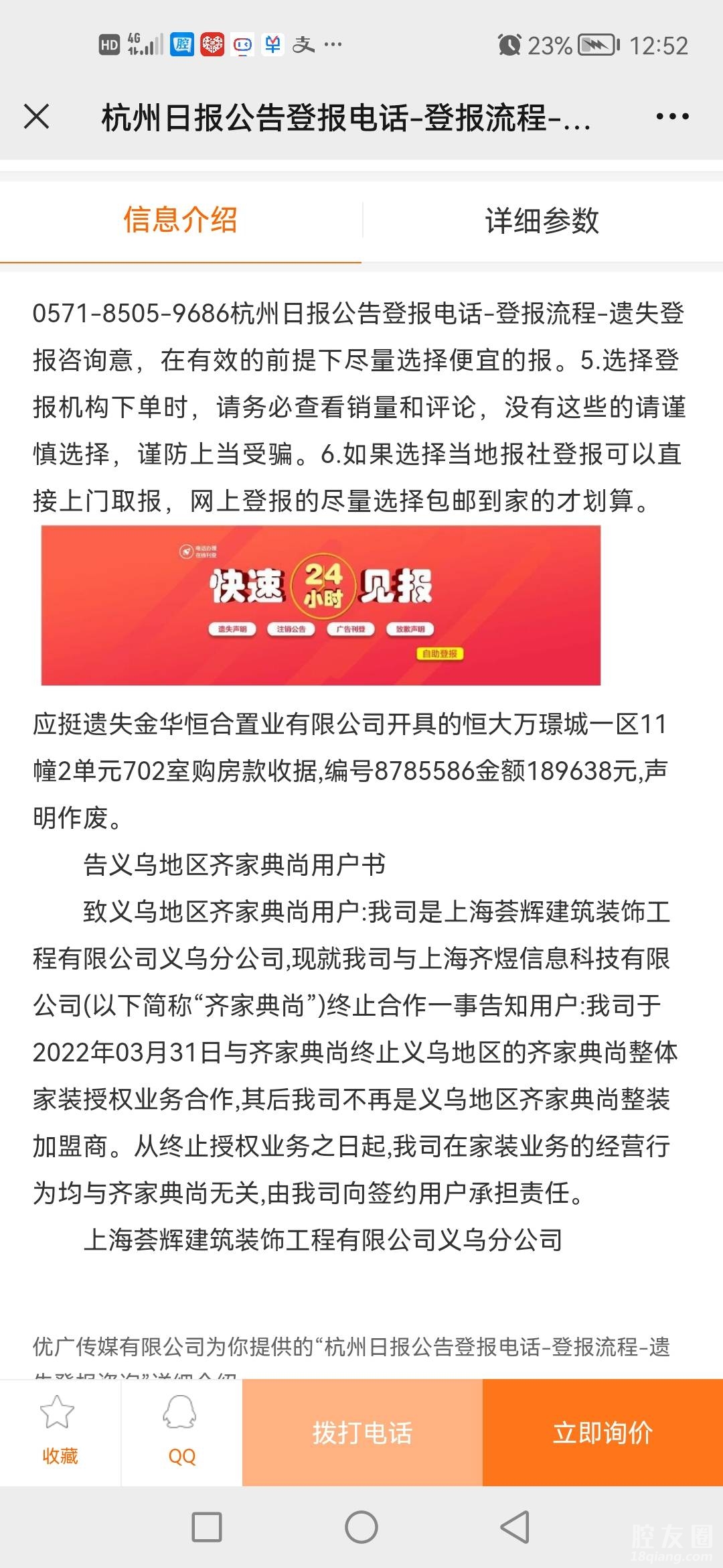 在登报上看到的告用户书,有这家装修公司3月31日后签订仍然带这个名字的的注意了,注意风险(来源于网站,大家自己求证),结合该公司店面门头已经拆标,似乎……我们这些之前的用户谁负责