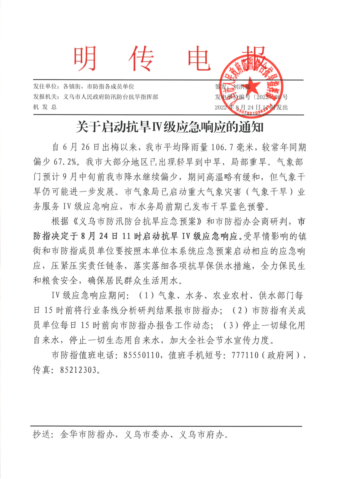 [义乌故事]刚刚,义乌启动抗旱Ⅳ级应急响应!发布强对流天气预警→ [复制链接]