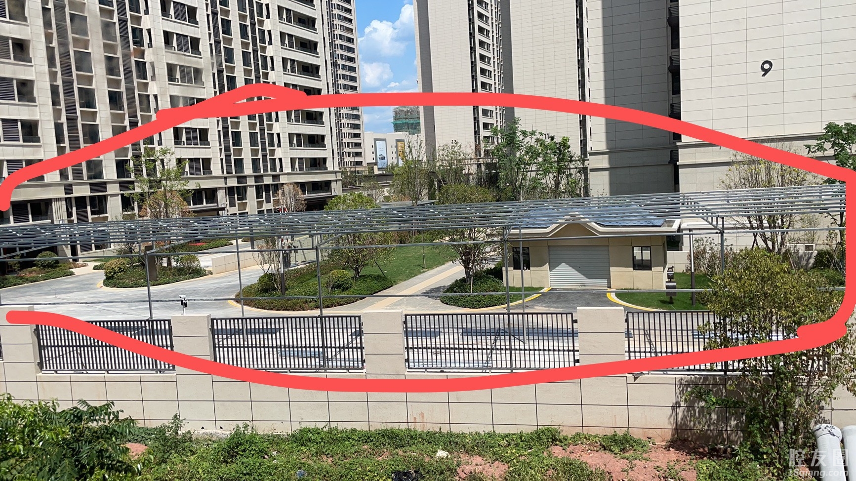 这还是半成品还在造,长50米左右,高有6米左右,差不多两层楼的高度,我们这边一排都是排屋,下面两层视线被挡的严严实实的!
