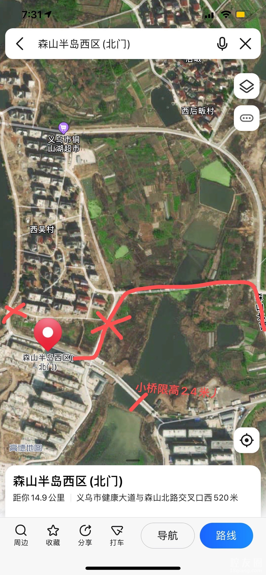 我住义亭森山半岛西区,因疫情到现在为止还有很多护栏没有拆,问题在于这个护栏把森山北路到小区大门的环村路给堵了,剩下唯一一座小桥限高2.4米,正值小区装修入住高峰,很多装修材料、物流快递货运车辆进不来!希望有关部门帮忙协调一下