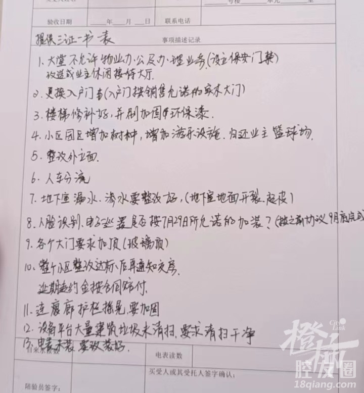 李女士说,这不是自己第一次买房,从来没见过这么应付业主交付的,相关竣工验收等证件不公示不说,房开竟然说交完房第二天业主就不能进小区了,具体什么时候能进不知道。