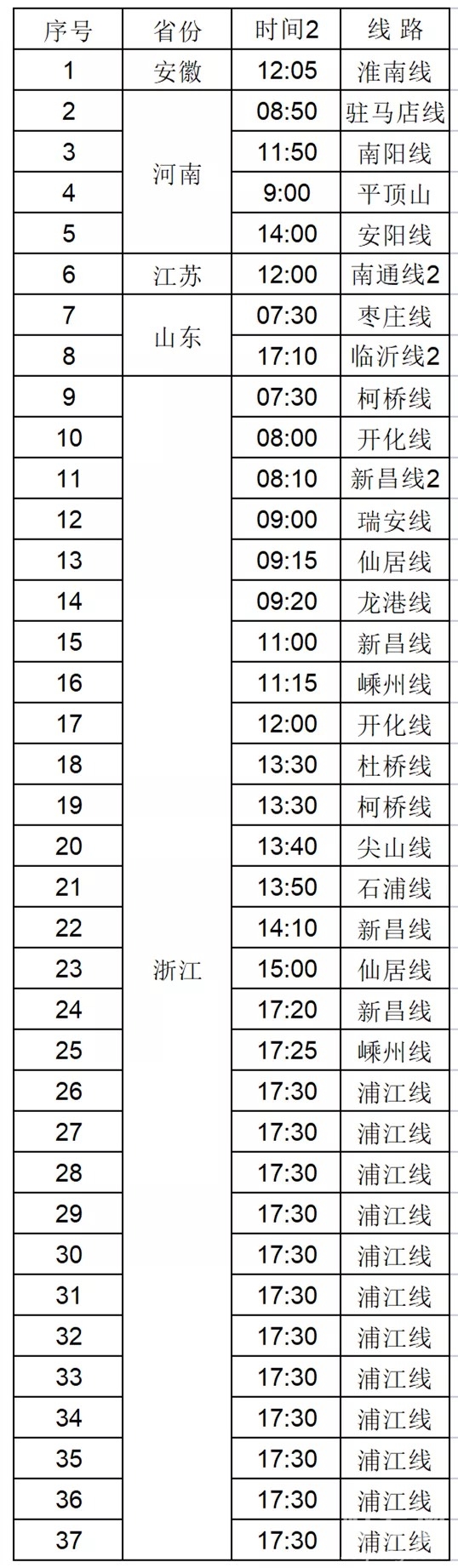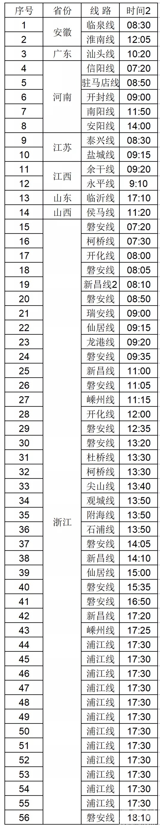 8月29日,商贸站新增省外线路包括安徽临泉、广东汕头、河南信阳、河南开封、江苏泰兴、江苏盐城、江西余干、江西永平、山西侯马;新增省内线路包括磐安、观城、附海。